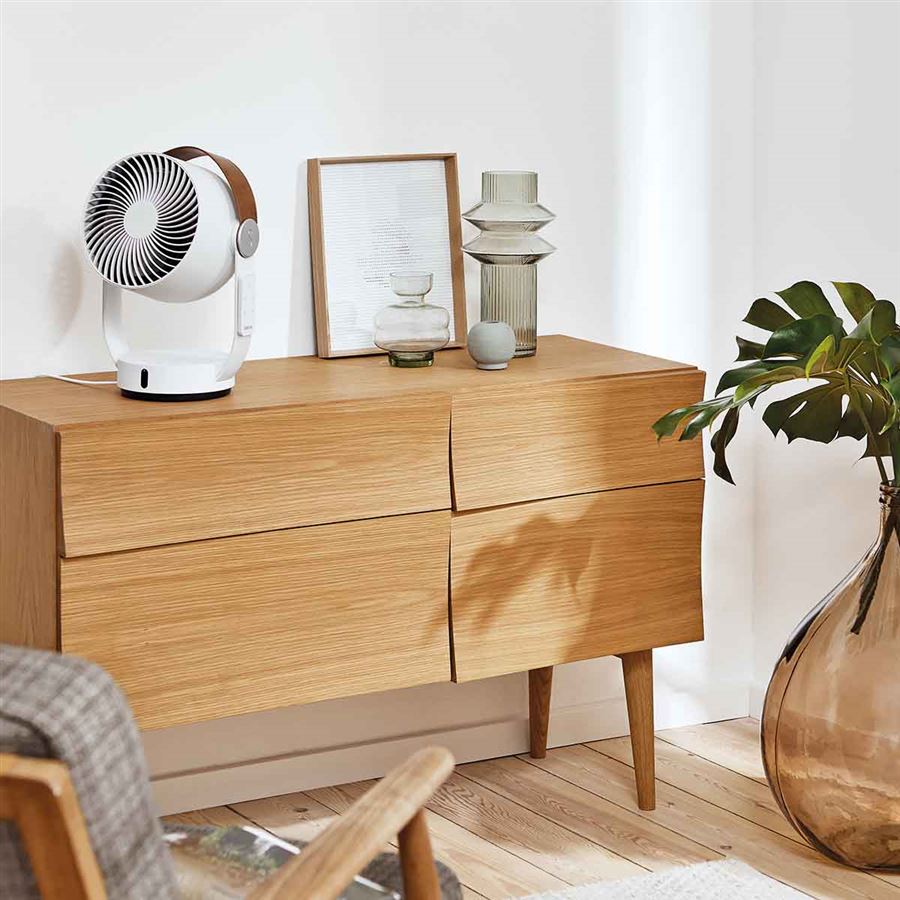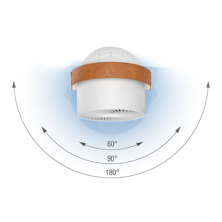 A Leo asztali ventilátor innovatív 3D oszcillációs rendszerének köszönhetően vízszintes és függőleges irányban is keringeti a levegőt. Kis mérete ellenére akár 8 méterre is eljuttatja a levegőt a helyiségben.