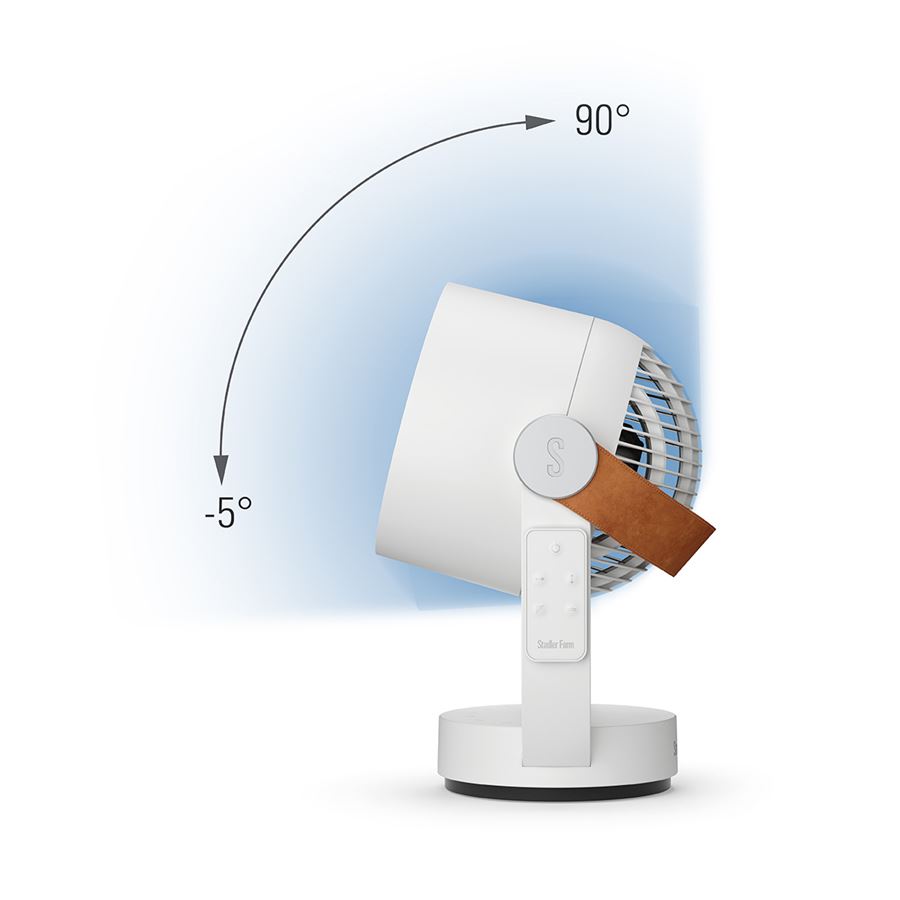 A Leo ventilátor függőleges légáramlása -5° és 85° között állítható. A vízszintes és függőleges légáramlás kombinációjával akár 8 méterre is eljut a levegő minden irányban.